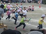 かけっこはトラックを半周以上走った年中さん♪かっこよくゴールテープをきって走り抜けました。